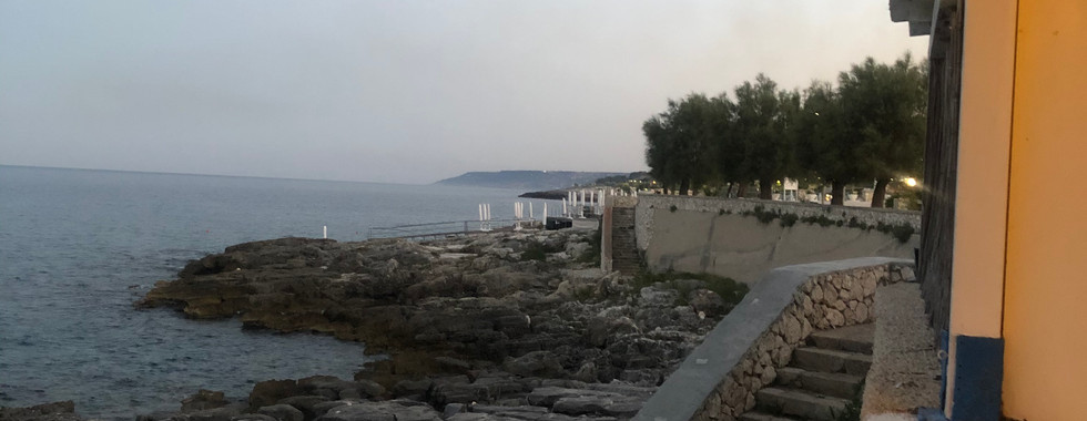 Sunrise, Marina di Andrano allows one to see the backlit mountains of Albania across the Adriatic. A charming seaside summer resort is a lovely place of terraced homes facing the sea with a couple of cafés a beach club, and lot's of places to lay out on the rocks. Our last week there in July '19 was spent at Oceano Villas with Maria and Andrea, the nicest hosts ever! https://www.airbnb.com/rooms/15289639?source_impression_id=p3_1598715526_eI6EJxu8yTlG1%2FET