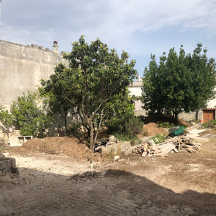 Above-The trees in the Garden are: The largest, a Nespole/Loquat, at rear is a Bay leaf/Bay Laurel, and the smaller ones are a combination of Mandarin, Lemon, Orange, and a fig tree. We're hoping that most survive; but given the movement of earth it's hard to say.